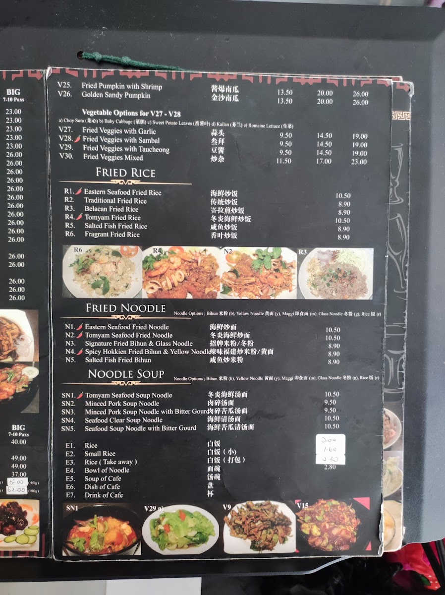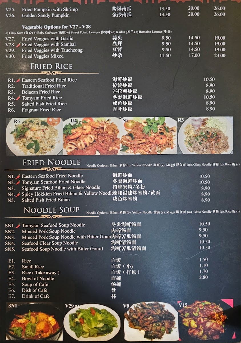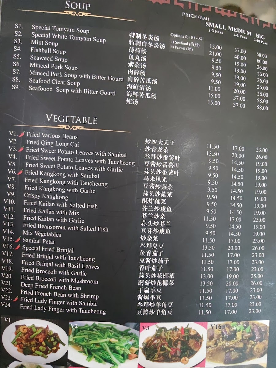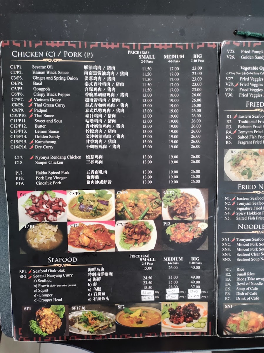 The menu features a variety of options that cater to different times and moods. You might enjoy a warm bowl of Tom Yum Soup or Tom Yam Seafood Soup to awaken the senses, or share flavorful plates like Crispy Black Pepper Squid and Pandan Chicken amidst easy conversation. Traditional favorites such as Nyonya Rendang Chicken and Steamed Fish Head provide satisfying depth, while light sides like Fried Kailan with Mix or Deep Fried French Bean add balance to the meal.